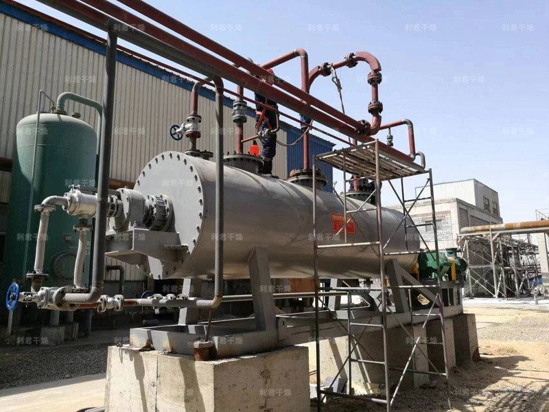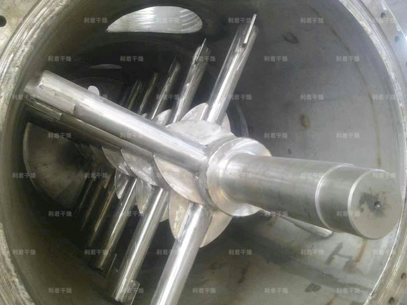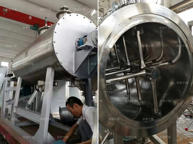 本機是一種新穎臥式間歇式真空干燥設備,濕物料經傳導蒸發,帶有刮板攪拌器不斷清除熱面上的物料,并在容器內推移形成循環流,水份蒸發后由真空泵抽出。