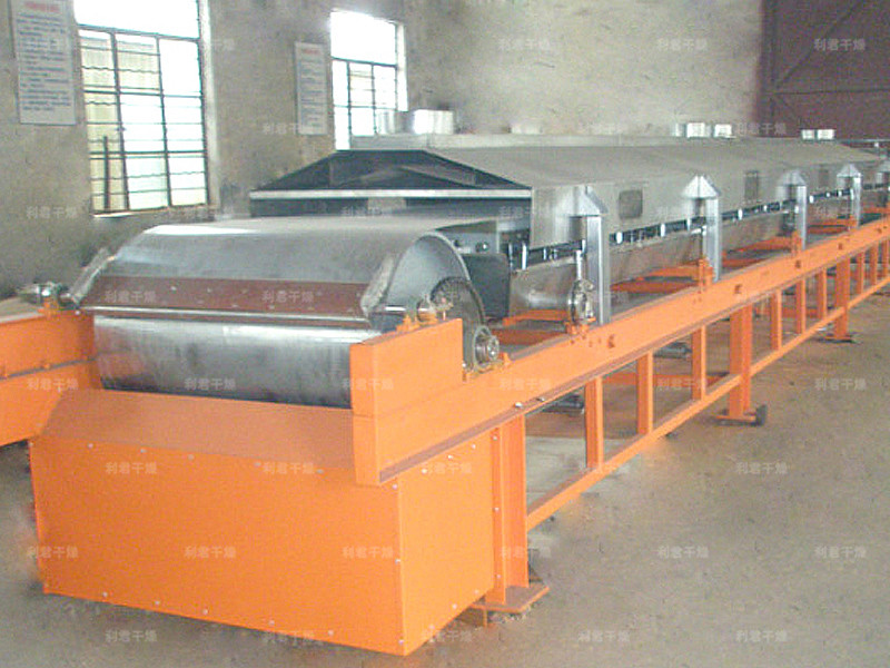 該機主要由落料模造粒成型機頭,冷卻輸送不銹鋼帶及帶輪、噴淋冷卻系統、傳動系統、保溫裝置、機架、刮刀等組成。落料模造粒機頭主要由機頭模套和機頭芯軸等組成。噴淋冷卻系統主要由噴頭、盛水池等組成。傳動系統主要由減速箱(減速器)調速電機等組成。