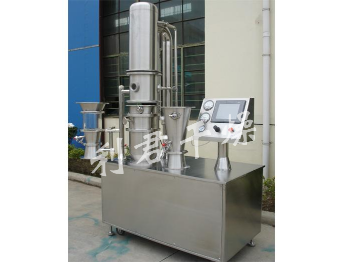 FBL旋流流化床制粒包衣機是將流化床做成葉片式結構的流化床,并使葉片呈一定斜度,讓氣流從葉片的間隙通過,形成環(huán)流狀的強大氣流,使物料呈旋渦狀似的有序運動,同時安裝在側壁的氣動噴嘴將粘合劑或包衣液噴入呈旋渦狀的物料層,從而將粉體制成顆粒或獲得連續(xù)均勻的衣膜。
